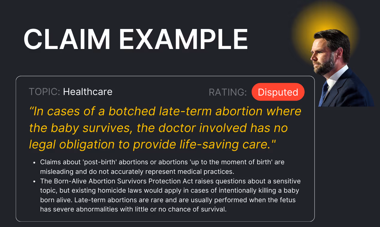 - In-Depth Metrics: Insights into speaking time per candidate, the total number of claims fact-checked, and their alignment with credible sources.