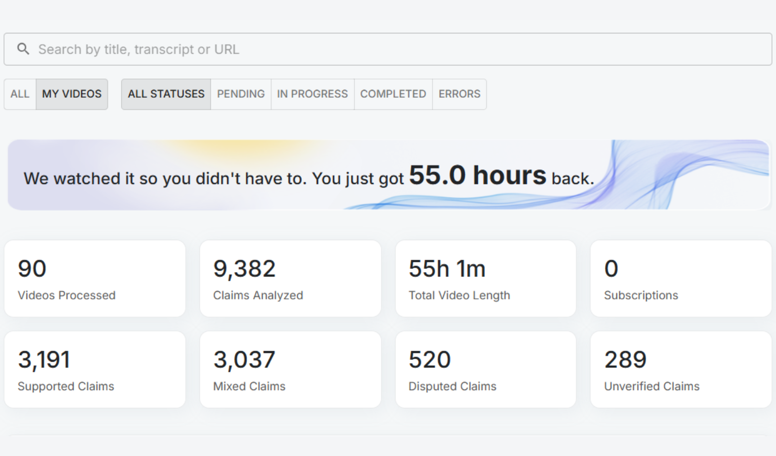 Claims are the key statements made by speakers in the video. The specific assertions, statistics, and positions worth verifying or investigating. Gather surfaces these automatically and links each one to sources, so you can move straight from what was said to whether it stands up.